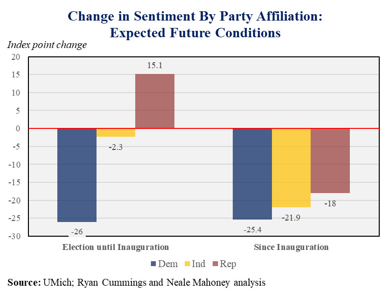 From Trump's election to inauguration, Rs expected conditions increased by +15. From Jan-today? -18! That's a 33pt swing!