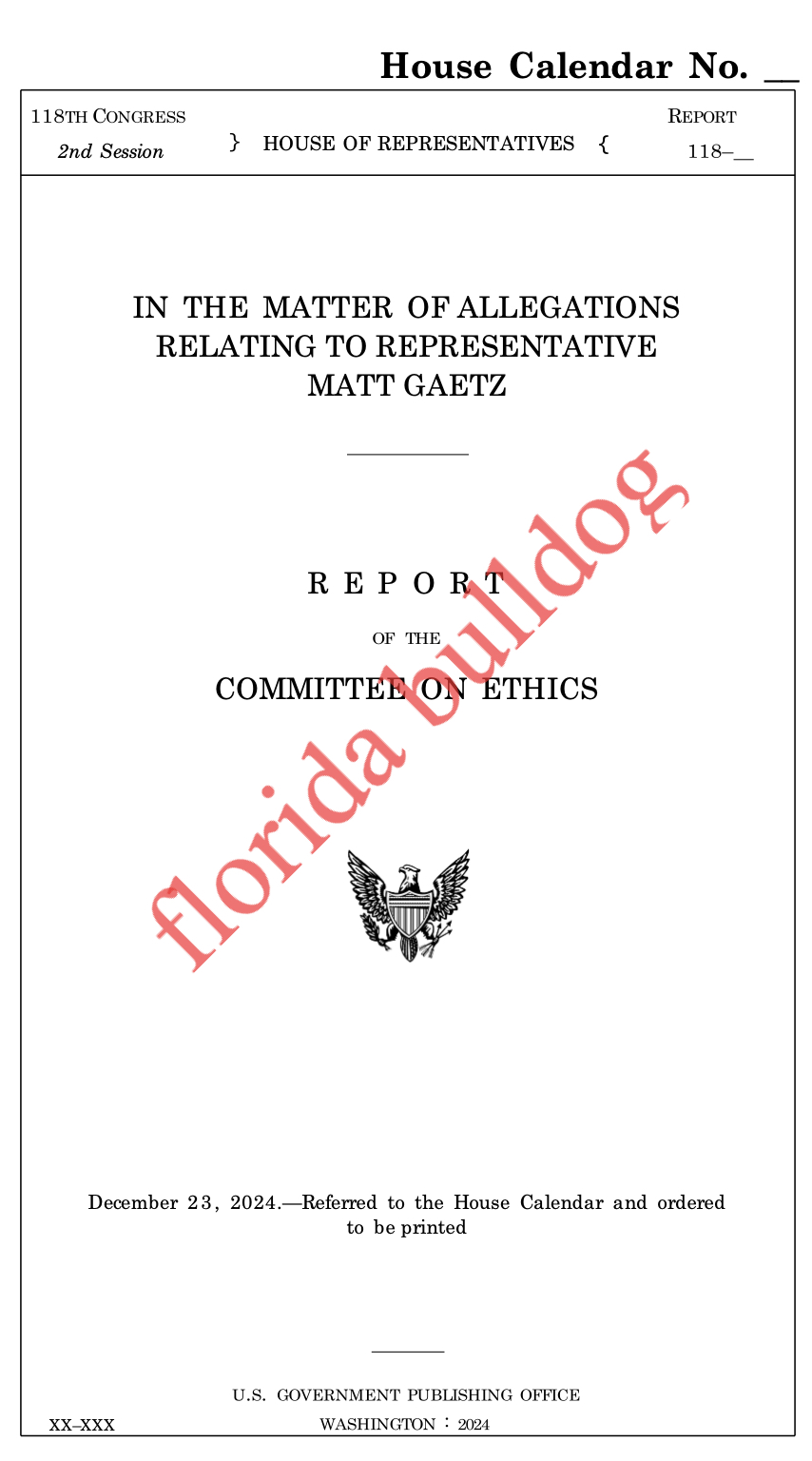 Scott Horton(robertscotthorton.bsky.social): The House Ethics Committee found that Matt Gaetz did all of the horrible things previously claimed—sex trafficking minors, prostitution (including of minors), drugs, drunk driving, obstruction, the works. The Florida Bulldog has secured and published the House report this evening.