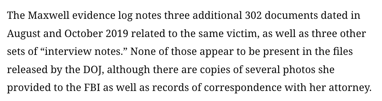 Almost every media outlet this side of Fox has reported @sollenbergerrc.bsky.social`s discovery of missing Trump allegation 302s, but most are missing significance. Roger proved they existed by pointing to a discovery inventory Maxwell got. SHE KNOWS what they say.