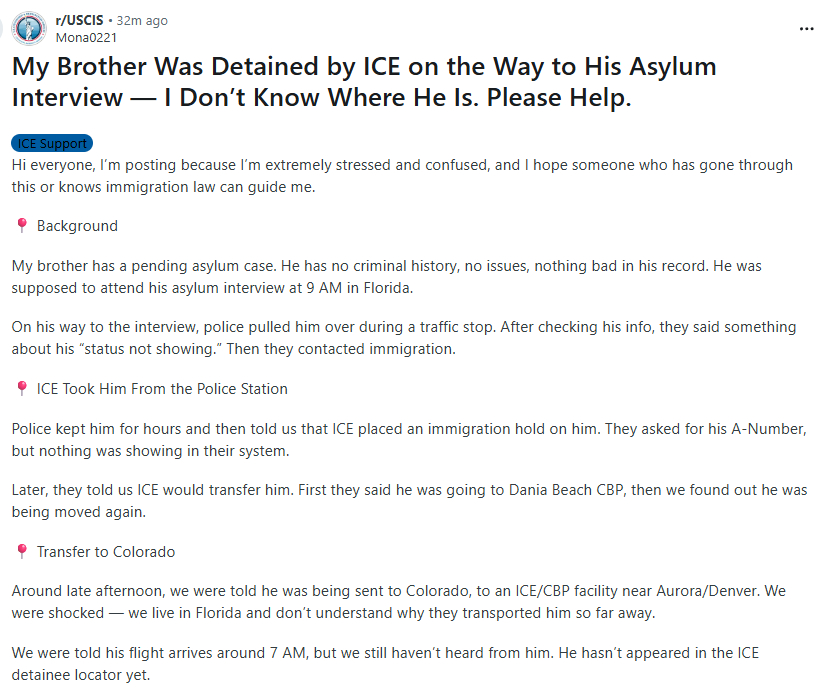 New: I spoke with a Colombian asylum seeker who was the victim of a ‘Kavanaugh stop’ about what it was like to be racially profiled, abducted in front his family and held in ICE detention hours from home for more than a month—despite doing everything “the right way.”