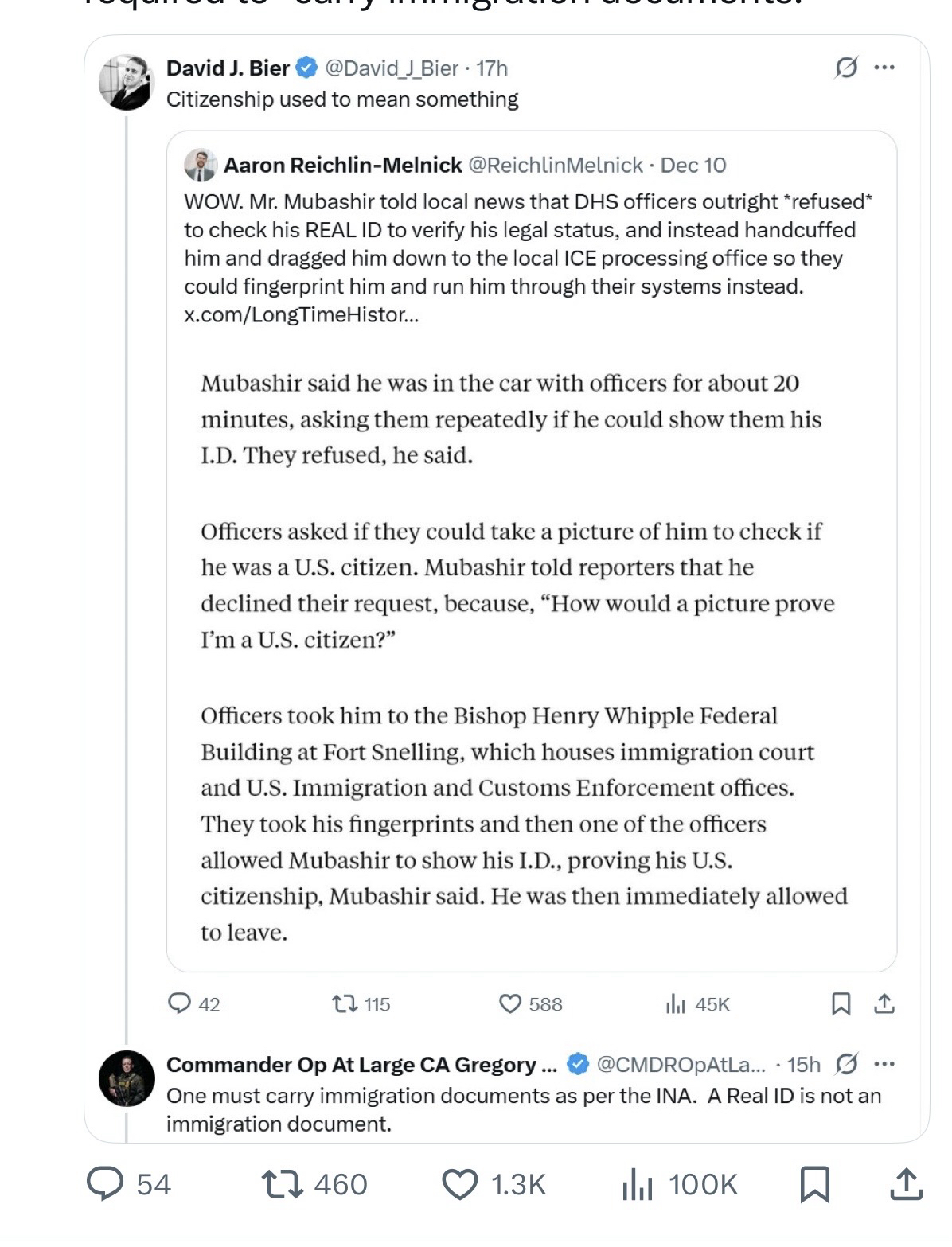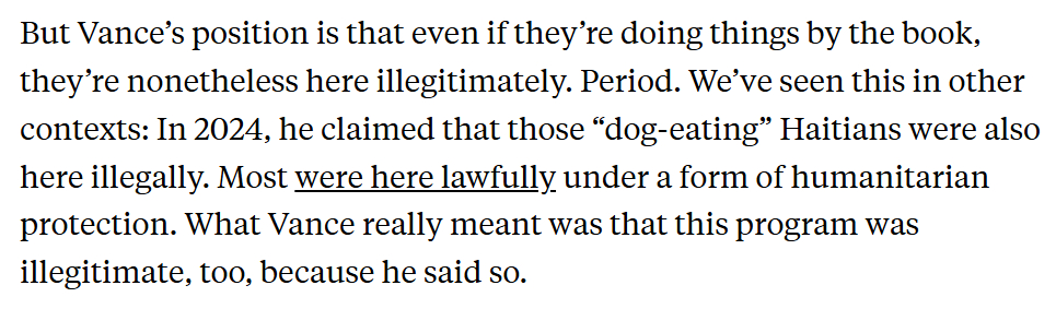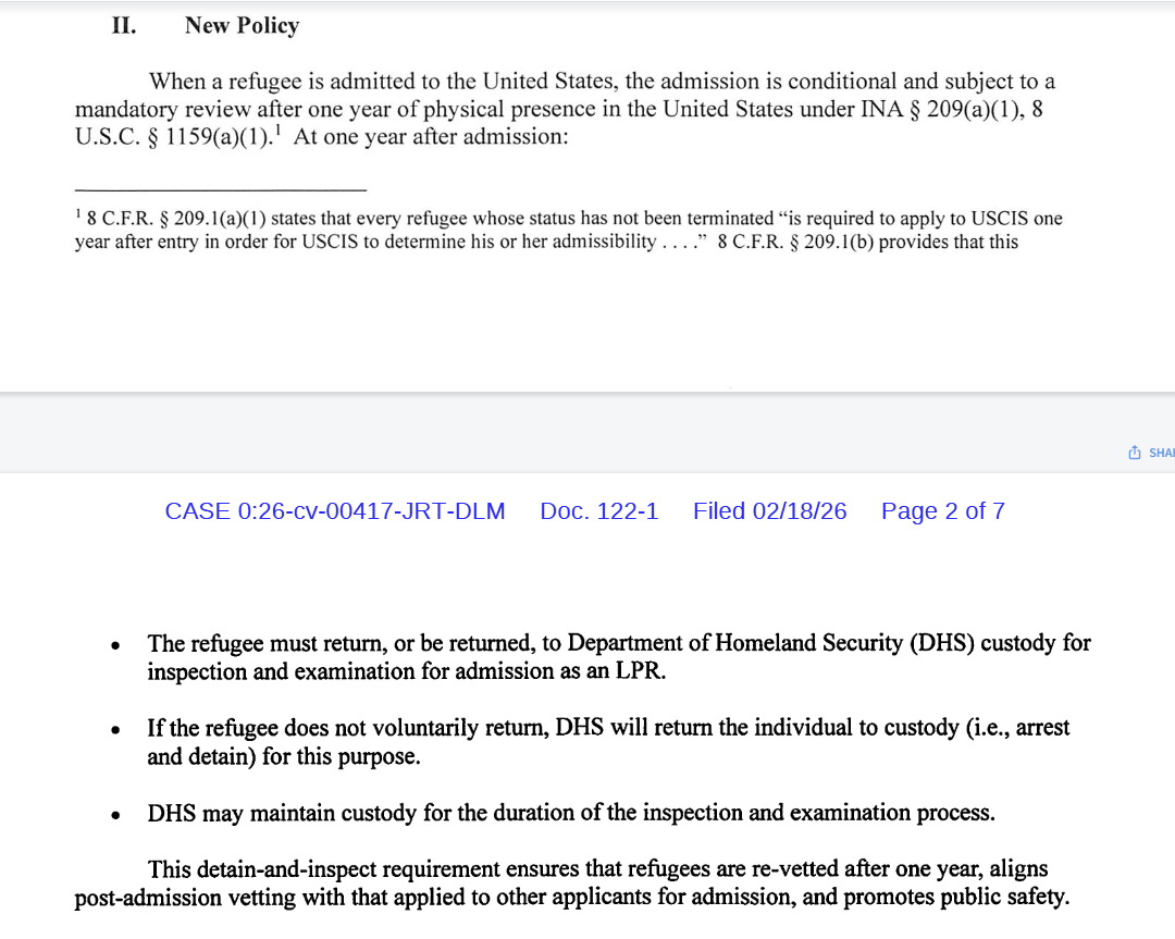 Let me explain what this genuinely EVIL memo does. The admin is doubling down on its plan to arrest, detain, and interrogate tens of thousands of legally present refugees; people already vetted who’ve lived here legally for 1+ year.
