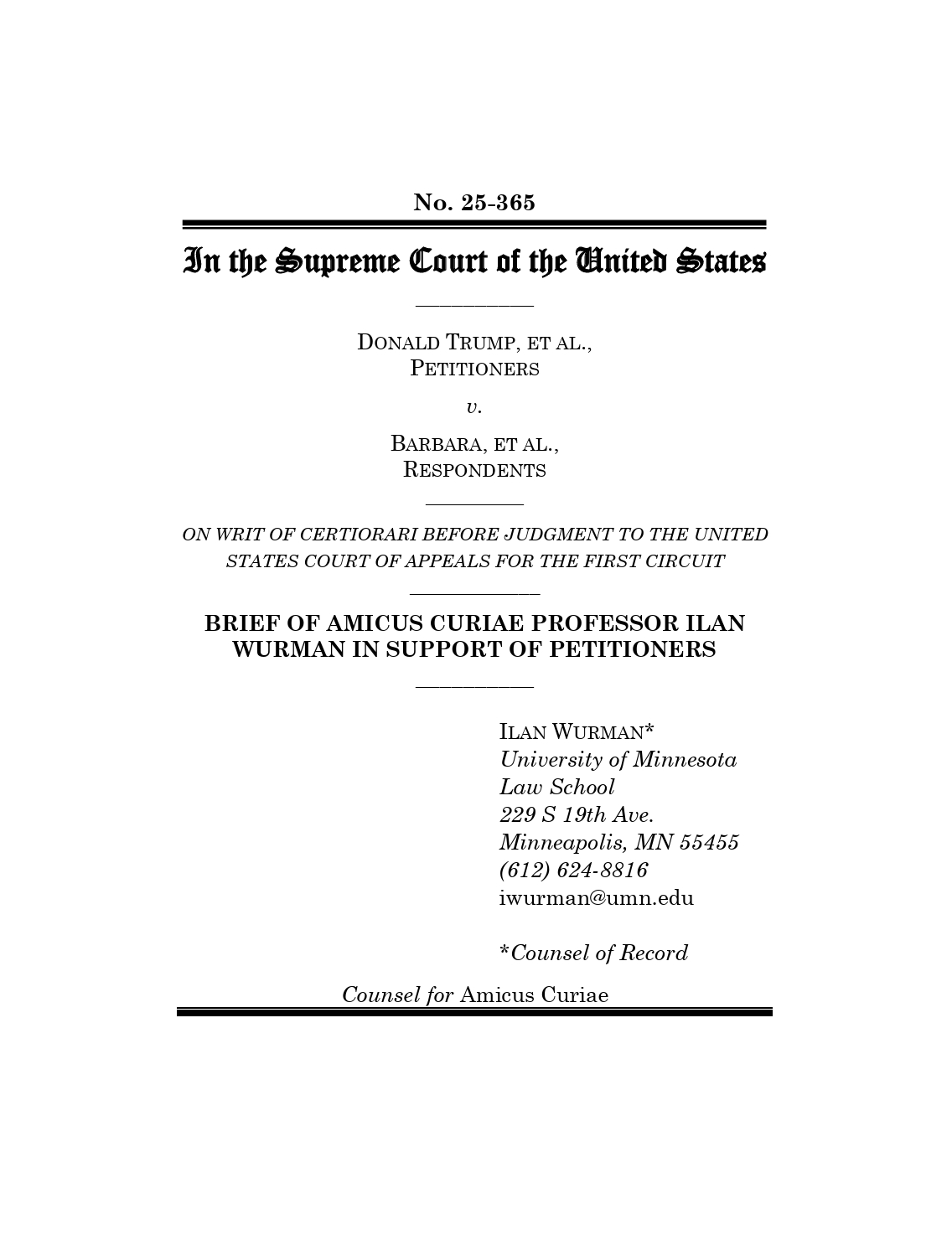 Ilan Wurman`s anti-birthright citizenship Supreme Court amicus. I won`t mince words. He bastardizes the common law. It is a methodologically bankrupt approach to the history of Anglo-American constitutionalism. It is little more than preening to gain someone`s favor, but certainly not a scholar`s.