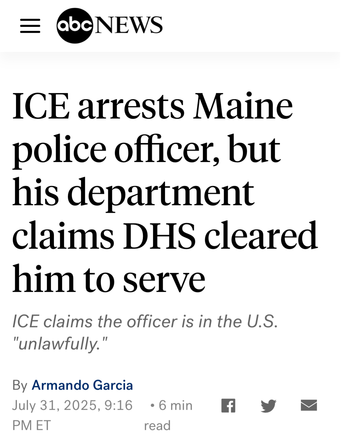 Daniel Silliman(danielsilliman.bsky.social): A legal asylum-seeker who works at Chipotle and plays music at a church in Maine went missing. His pastor searched and searched, eventually finding his abandoned car with the keys on the floor.