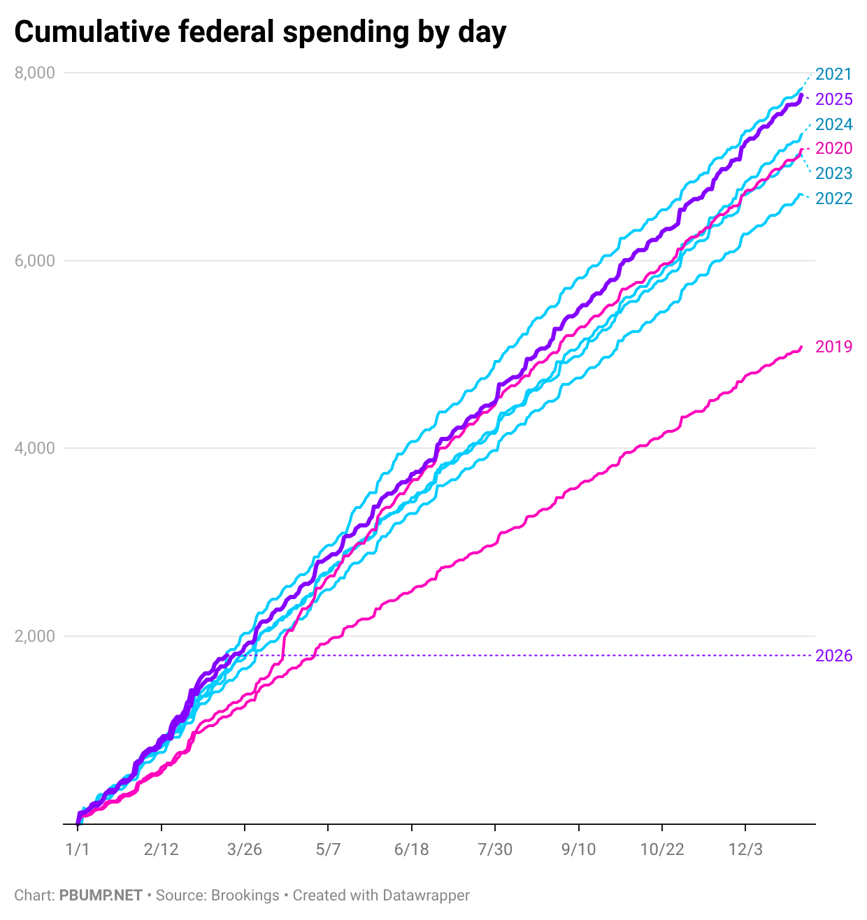 Every Monday I check to see if all this insanity is even on balance reducing federal spending and so far ... no