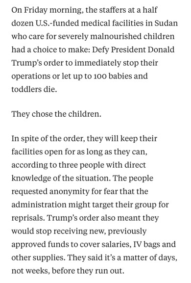 This is among the most horrific things I’ve ever read — testimony from dying children whose access to medicine has been cut off by the Trump administration.