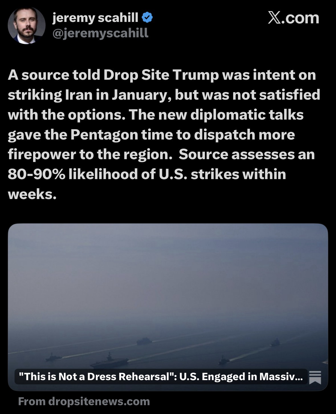 Duncan Weldon(duncanweldon.bsky.social): A few weeks ago oil was about $70 a barrel and Iran was mostly selling at an often steep discount to China.