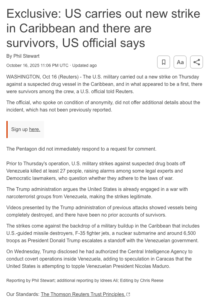 1/ I worked at DoD. I literally cannot imagine lawyers coming up with a legal basis for lethal strike of suspected Venezuelan drug boat.