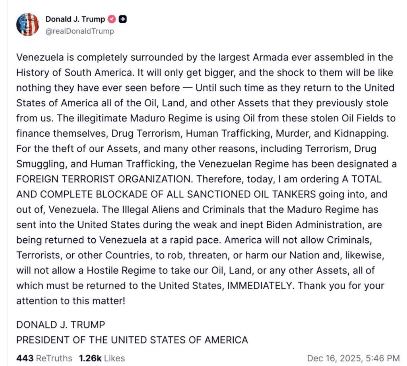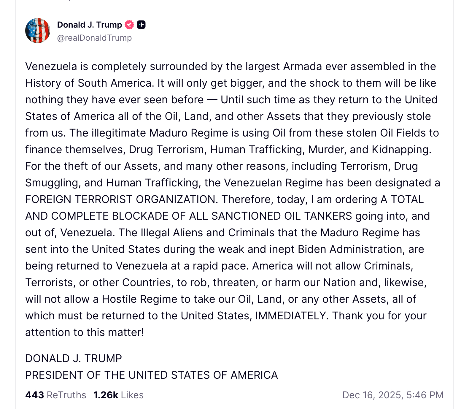 “Over the long Christmas break, the president of the United States may have leaked classified information about a secret military operation targeting Venezuela, and did so while calling in to a New York radio show – hosted by a ‘Marty Supreme’ cast member – to brag…
